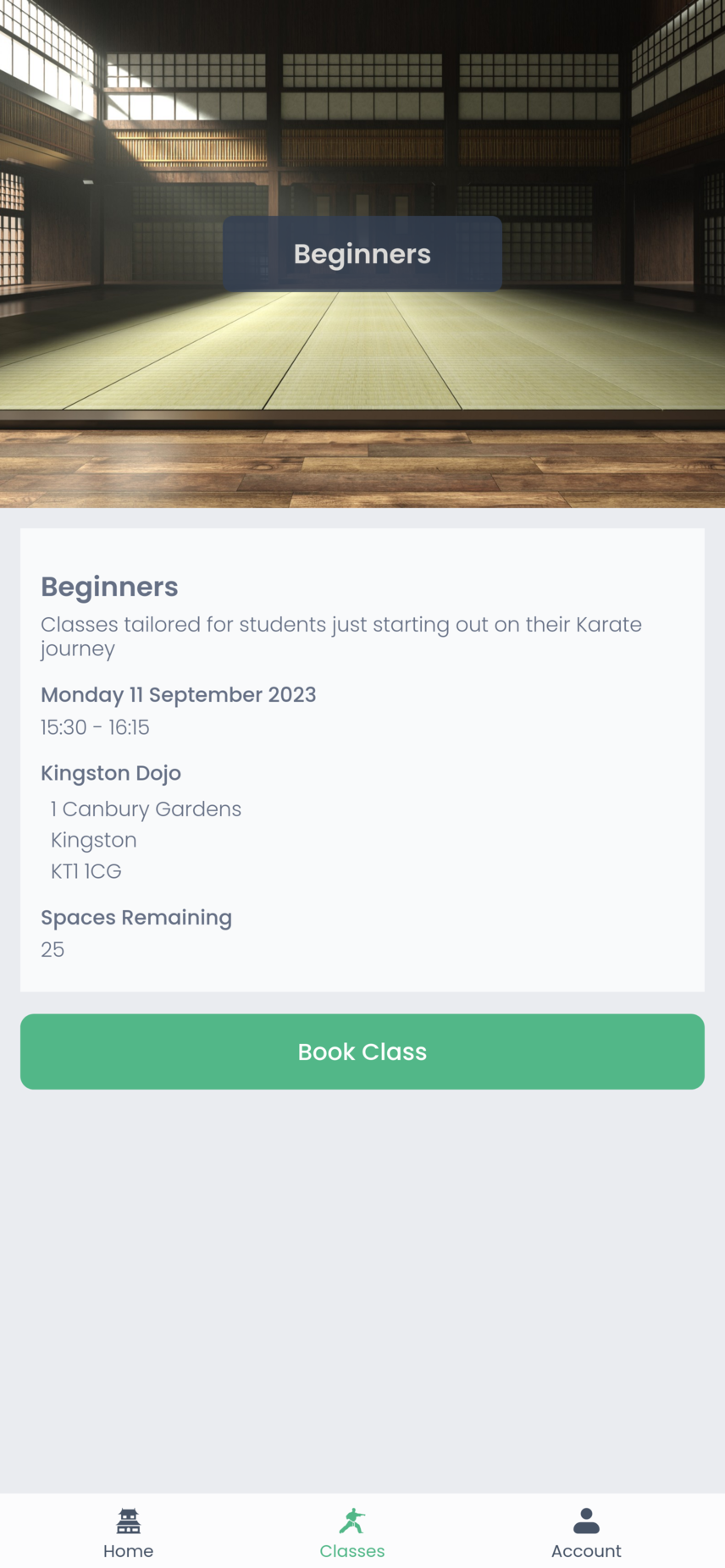 A screenshot of the Mokuso app class view